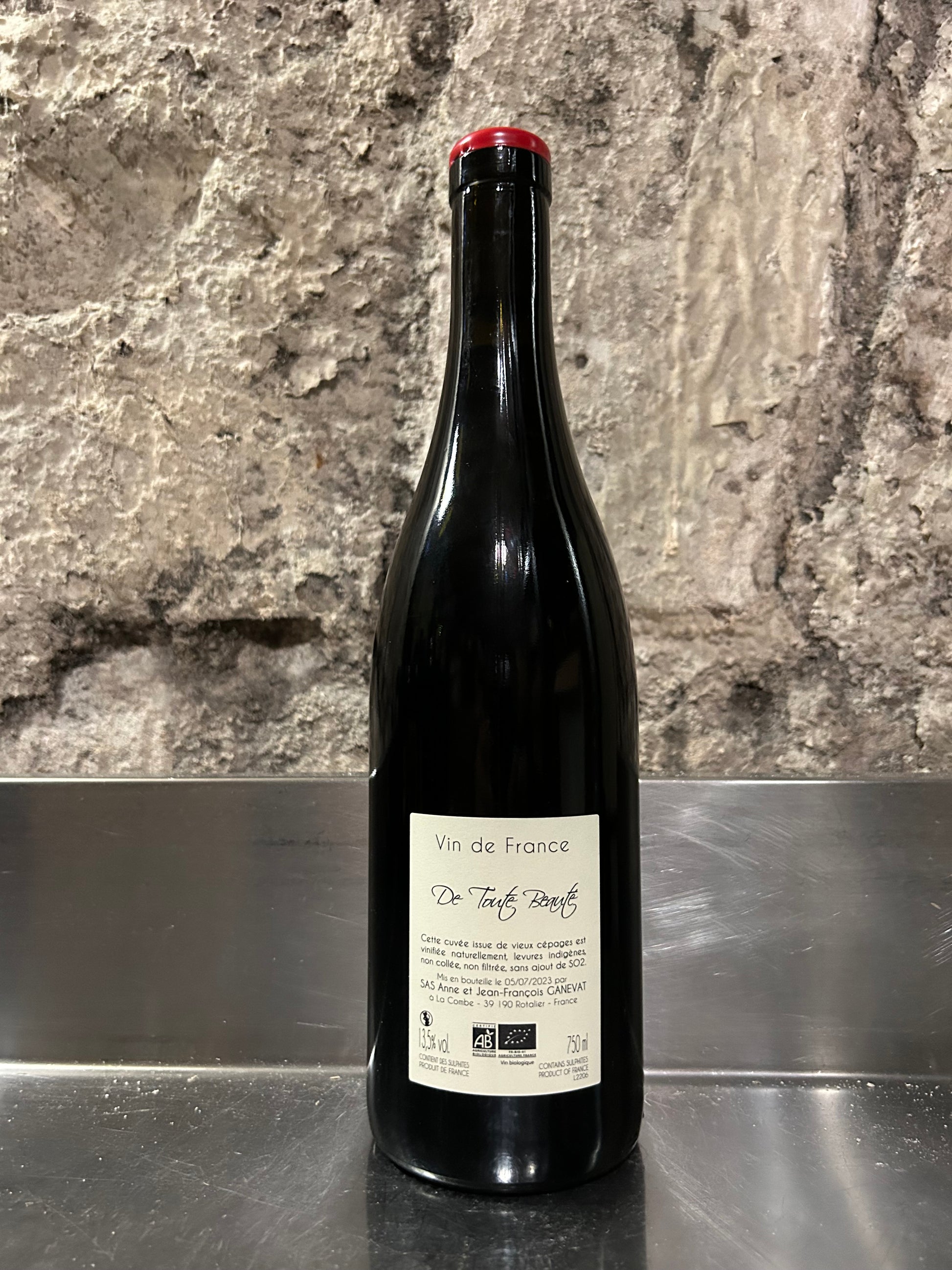 Un métissage de Gamay du Beaujolais et de vieux cépages jurassiens. Un combo simplement: De toute beauté!